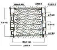 鏈條標號 節(jié)距P 鏈桿節(jié)距P1 鏈桿直徑D 網(wǎng)絲直徑D1 網(wǎng)帶螺距L 網(wǎng)帶節(jié)距J ?。≒) (p) (p1) (D) (D1) (L) (J) C2042 25.4mm 25.4×*節(jié) 5~8mm 1.0~1.6mm 3~19mm 6.35~25.4mm C2052 31.75mm 31.75×*節(jié) 6~10mm 1.2~2.0mm 5~21mm 6.35~31.75mm C2062 38.1mm 38.1×*節(jié) 8~12mm 1.5~2.0mm 8~21mm 6.35~38.1mm C2082 50.8mm 50.8×*節(jié) 10~12mm 1.5~3.0mm 10.5~21mm 12.7~50.8mm C2160 101.6mm 101.6×*節(jié) 10~14mm 1.5~4.0mm 10.5~27mm 12.7~50.8mm